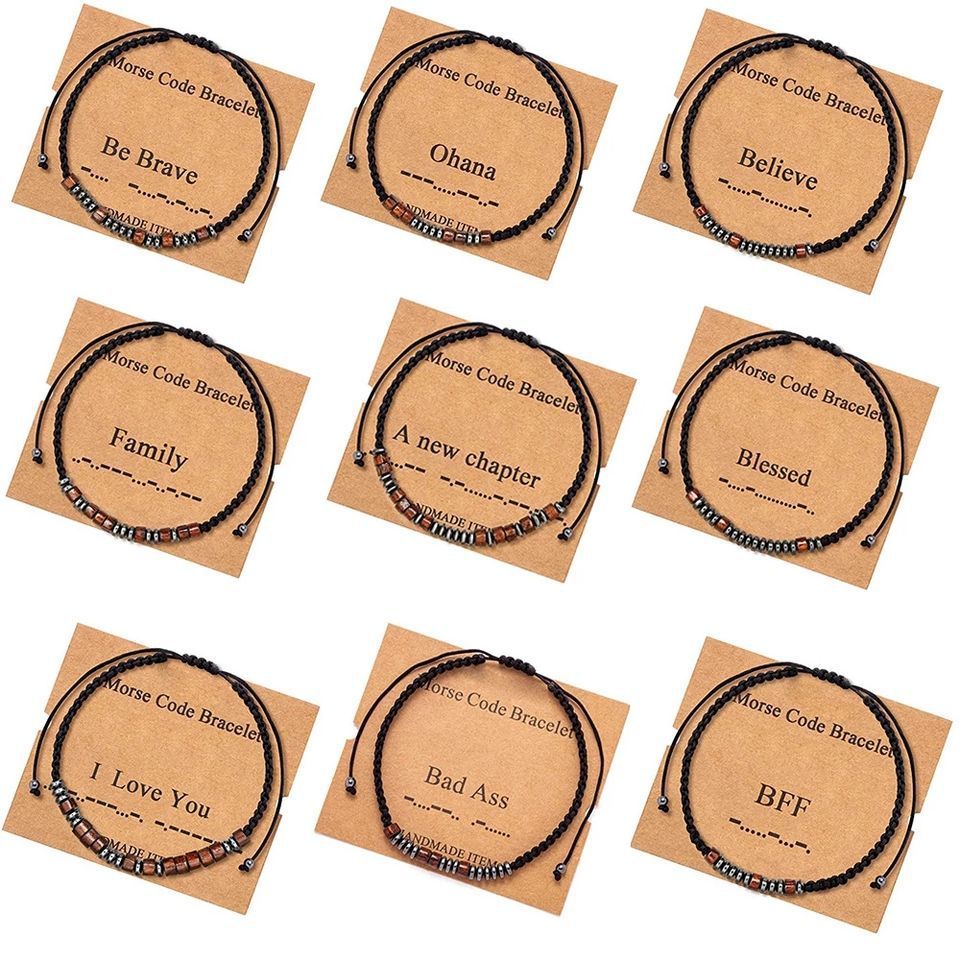Handmade Jewelry Black Couple Bracelet Adjustable Braided Bracelet For Woman Morse Code Bracelet