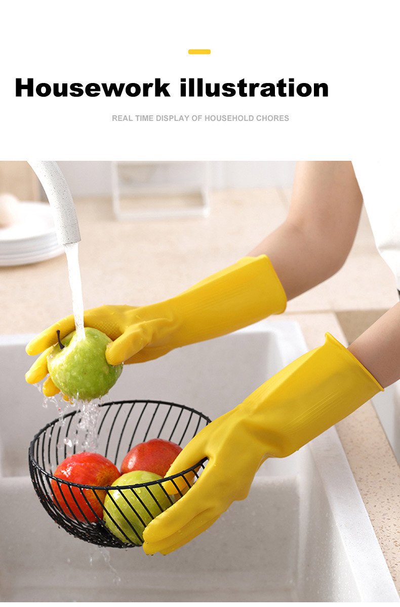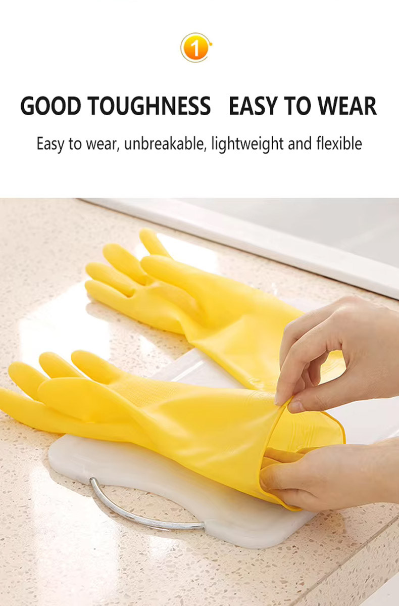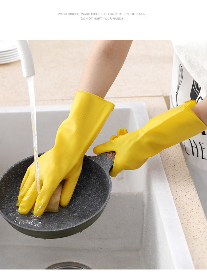 Women's Dishwashing Gloves Yellow Durable Waterproof PVC Kitchen Washing Glove Housework Fashion